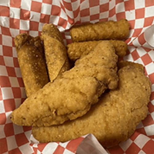 2 tenders, 2 pizza logs, 2 mozzarella sticks, 3 fried raviolis