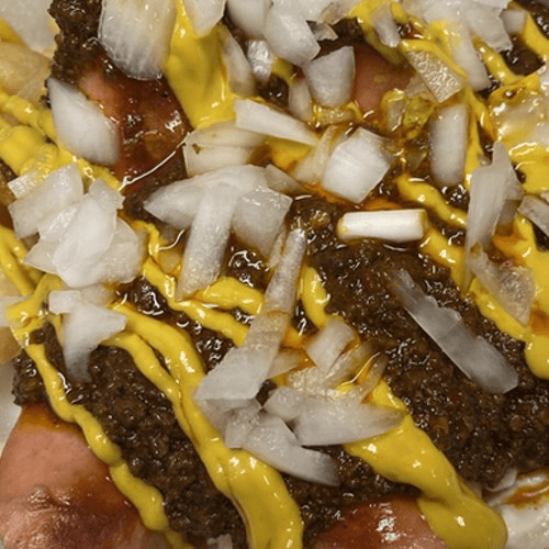 Plates include 2 sides: Homefries, French Fries, Tots, Mac Salad, Beans. Everything includes Mustard, Onions, Meat Sauce