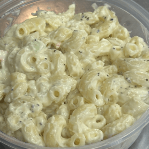 With coleslaw & French fries & side of cocktail sauce (coleslaw is on Fridays only any other day will get mac salad)