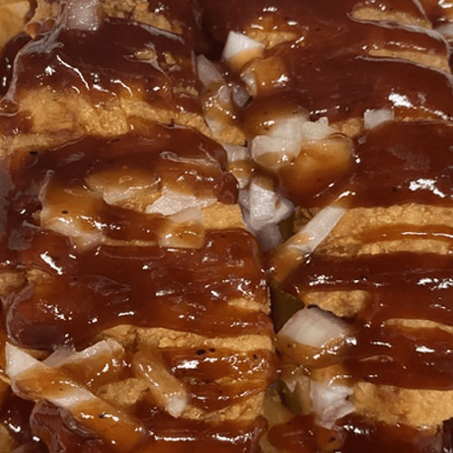 Made with crispy chicken, BBQ sauce, bacon & cheese