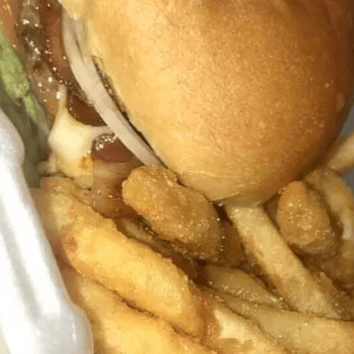 Cheeseburger, French fries, and choice of soda