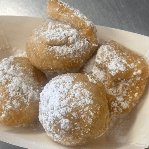 Four fried Oreos with powered sugar